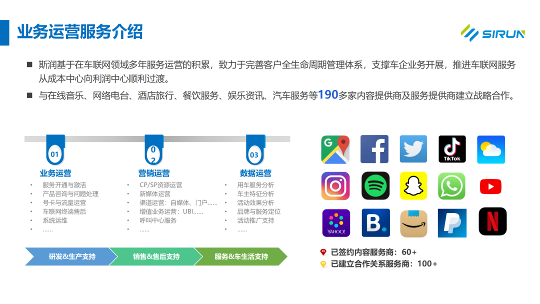 斯?jié)櫶炖首鳛槿蛸Y深的車聯(lián)網(wǎng)運(yùn)營服務(wù)廠商,擁有全球節(jié)點的車聯(lián)網(wǎng)部署運(yùn)營服務(wù)經(jīng)驗,可以為車企提供全球運(yùn)維服務(wù)保障。斯?jié)櫶炖示邆湄S富的國際化業(yè)務(wù)和全球化業(yè)務(wù)構(gòu)建經(jīng)驗,可以滿足不同地區(qū)政策法規(guī)要求,并提供完整的車聯(lián)網(wǎng)服務(wù)和全球運(yùn)維服務(wù)保障,為車企的國際化業(yè)務(wù)發(fā)展提供強(qiáng)有力的支持。