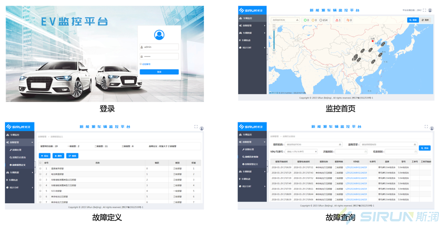 斯?jié)橢V監(jiān)控平臺設(shè)計嚴格參照國標GB/T 32960,建設(shè)和完善新能源汽車企業(yè)監(jiān)測平臺,幫助企業(yè)對整車及動力電池等關(guān)鍵系統(tǒng)運行安全狀態(tài)進行監(jiān)測和管理,將公共服務領(lǐng)域車輛相關(guān)安全狀態(tài)信息上傳至地方監(jiān)測平臺,企業(yè)監(jiān)測平臺接受國家監(jiān)測平臺的監(jiān)督抽查。滿足企業(yè)一級監(jiān)控,國家地方兩級監(jiān)管,三位一體的管控模式。