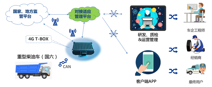 面向企業(yè)客戶商用車管理平臺可以對車輛進行管理、信息注冊、實時車輛狀態(tài)監(jiān)控、終端管理、故障報警、數(shù)據(jù)分析等服務(wù)功能。