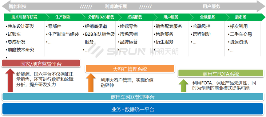 斯?jié)櫶炖蕿樯逃密嚻髽I(yè)客戶及車輛終端用戶提供一站式整體商用車管理平臺及應(yīng)用服務(wù)解決方案。商用車管理平臺能夠在滿足國家標(biāo)準(zhǔn)的基礎(chǔ)上,對商用車進行車況及排放指標(biāo)的監(jiān)控,通過監(jiān)控服務(wù)平臺對數(shù)據(jù)進行傳輸,并且具有快速接入、可擴展性強、服務(wù)調(diào)度效率高、應(yīng)用生態(tài)完整以及能夠保障信息安全的特點。面向車企客戶和終端用戶提供豐富的服務(wù)產(chǎn)品,同時滿足商用車大客戶平臺及車隊?wèi)?yīng)用管理需求。
